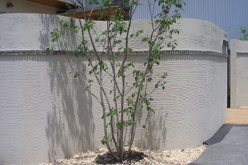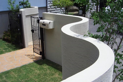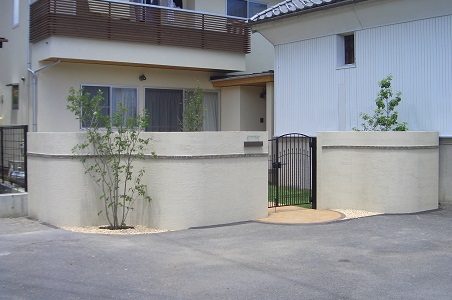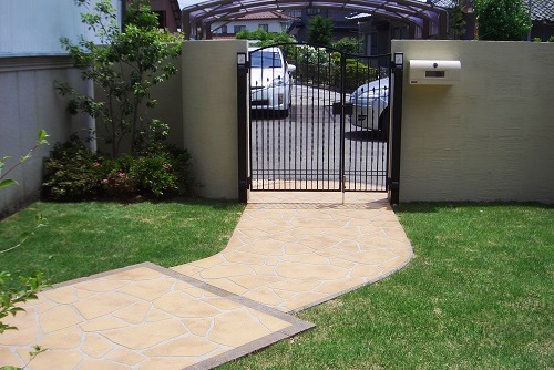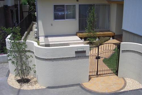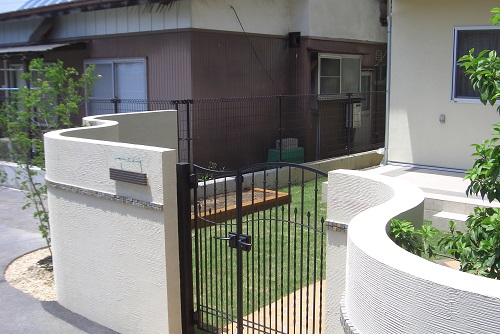ウォールは四国化成のアートウォール&鋳物門扉。