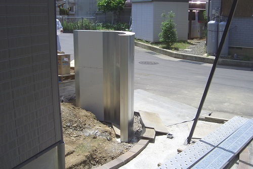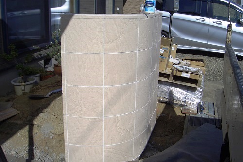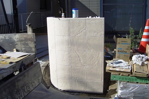 長野市川中島のエクステリア工事で、四国化成アートウォールで門柱を立てました。