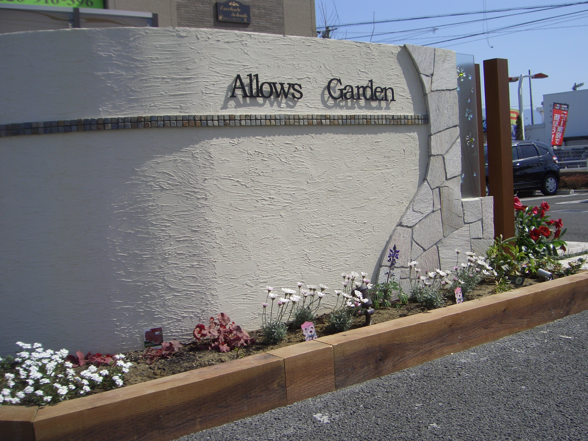 カーブを描いた塗り仕上げの白いウォールが目印です。