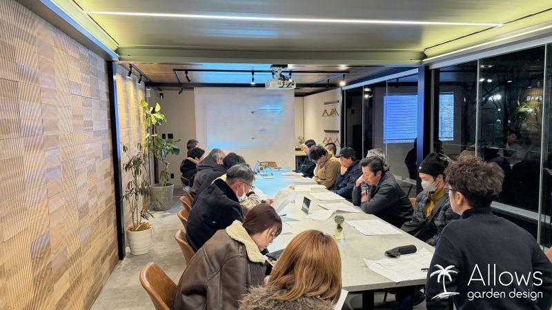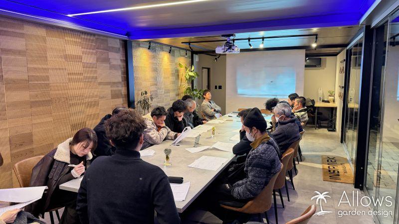 12月中旬インスパーク若里公園にて、日頃から現場を支えてくださっている協力会社の職人の皆さんと会議を行いました。