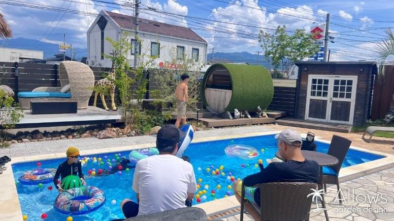 連日厳しい暑さが続いておりますが、当社で施工を承ったお客様は、当社自慢のプールをご利用いただけます。さらに、バレルサウナもご体験いただけますので、ご希望の方はぜひご予約の上、お越しください。