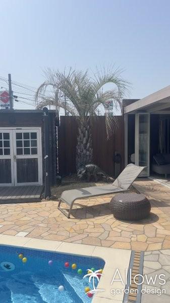 当店の展示場にある『ココスヤシ』の冬支度として、以前『こも巻き』を行いました。暖かくなってきましたので、こも巻きを外し、今年も元気な姿を見せてくれました。夏が待ち遠しいですね。