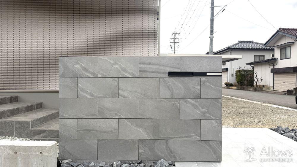 タイル面は凛としたおもてなしの表情、ジョリパット面は手仕事の温もりを感じる施工。