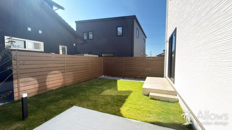 フェンスにはあえて木調カラーを選ぶことで、温もりのある空間に仕上げています。