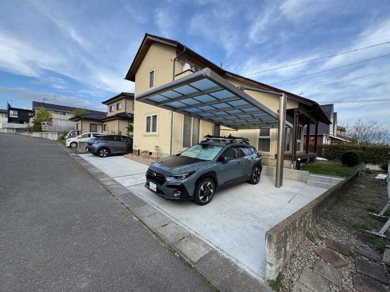 床面はコンクリート舗装でローメンテナンスに仕上げ、後方支持タイプのカーポートを設置。