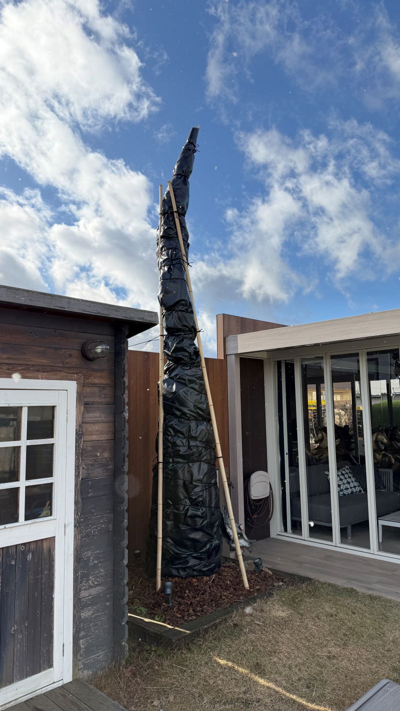 また、『こも巻き』だけでなく薄い防草シートをかけることにより、植物は暖を取りつつ呼吸ができます。