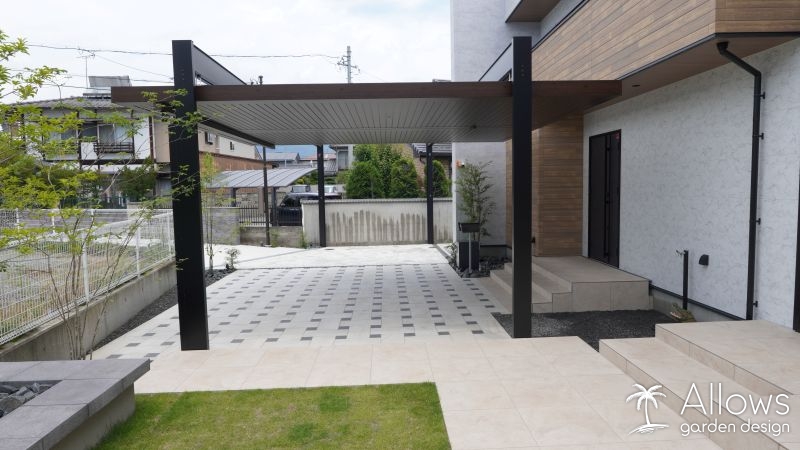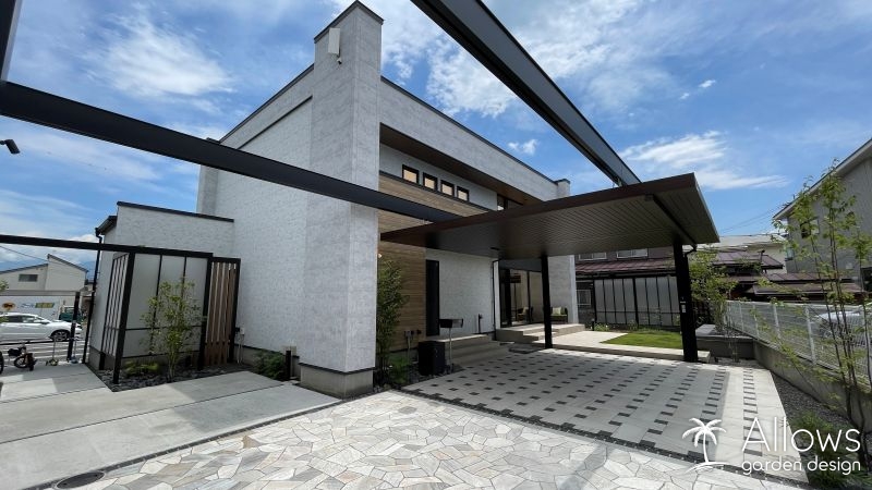 最大の特徴は、玄関から車までを大きなフレームで繋いだ動線設計です。