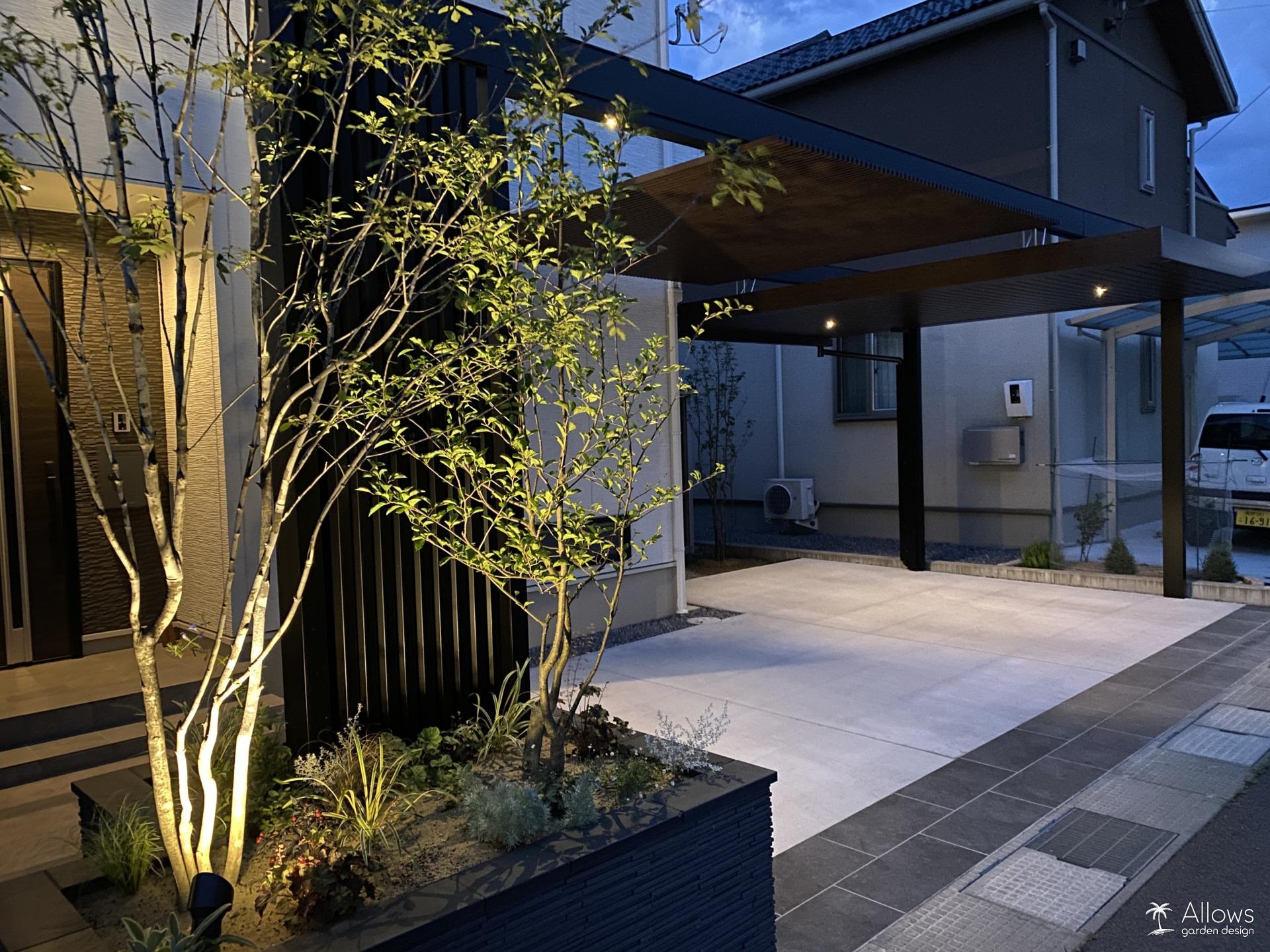 シンプルモダン外構ナイトシーン