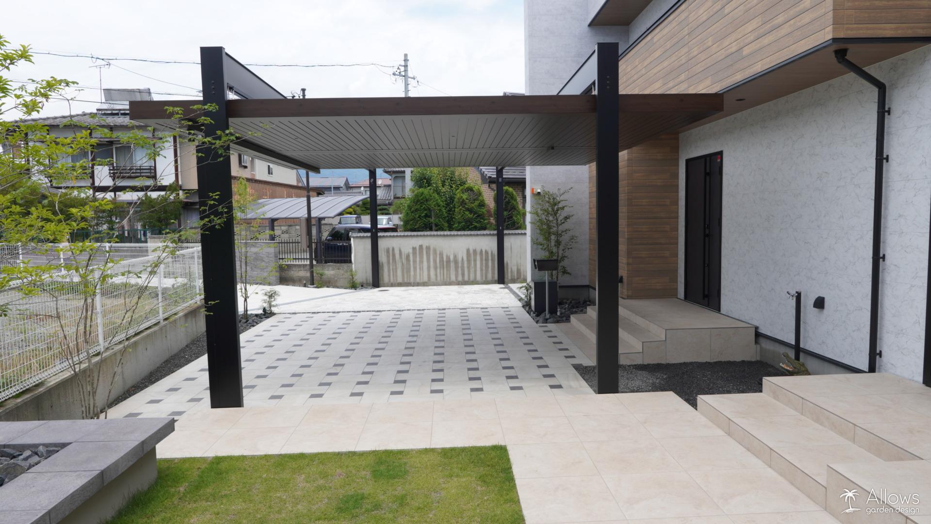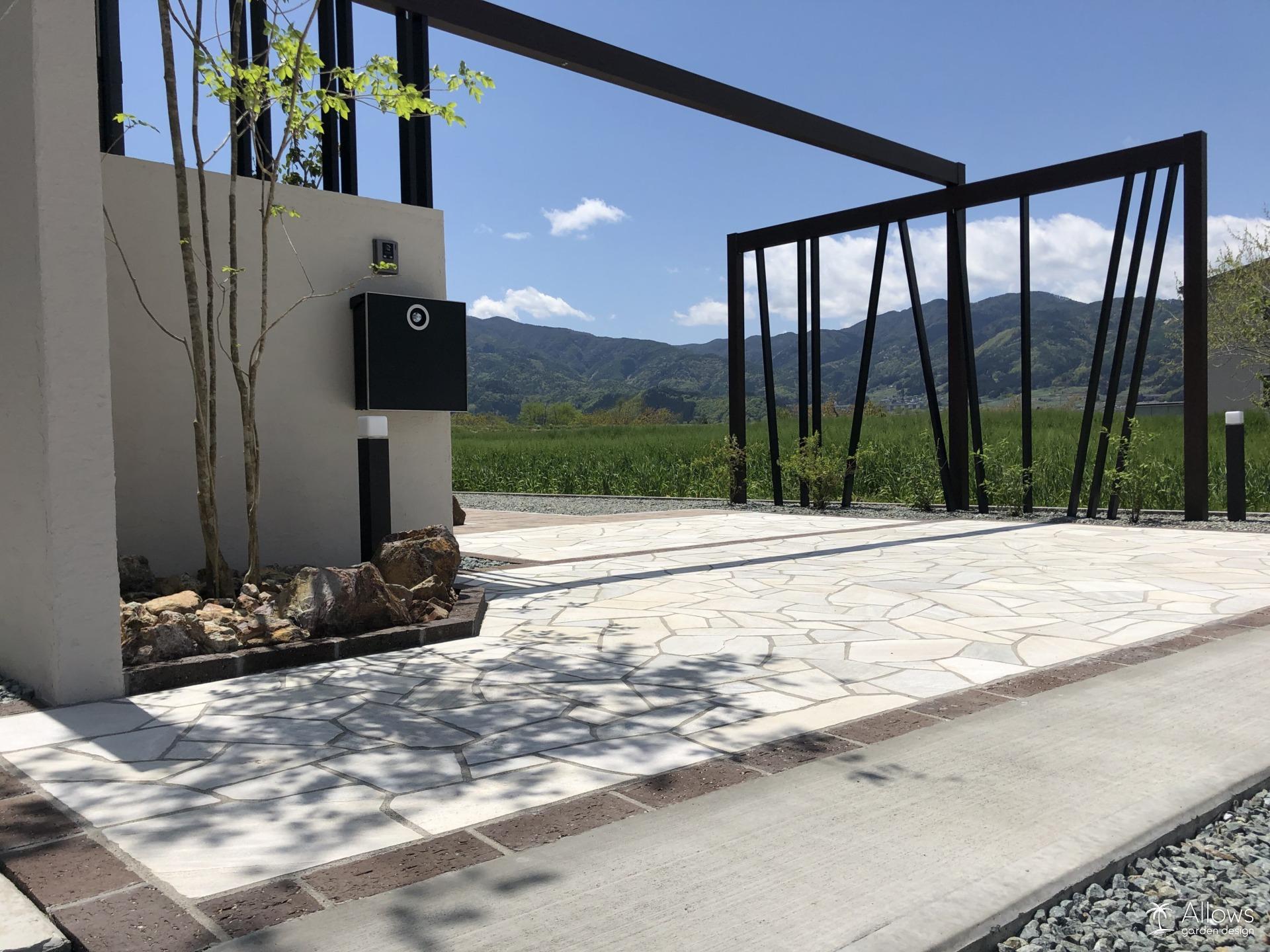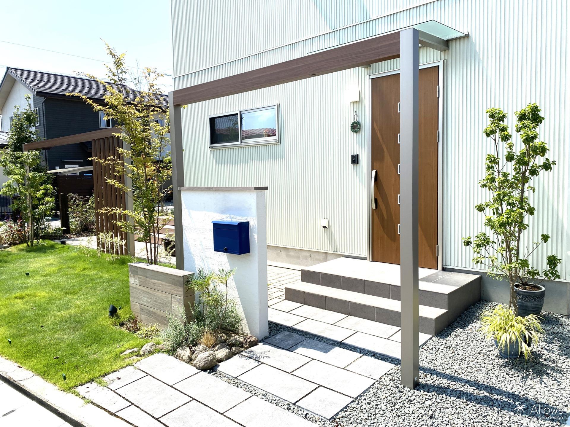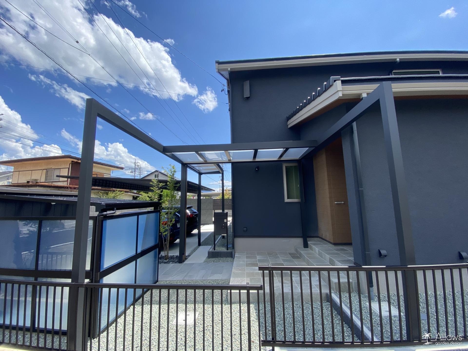 Gルーフ アプローチ屋根×タイル門袖(ジョイアストーン)