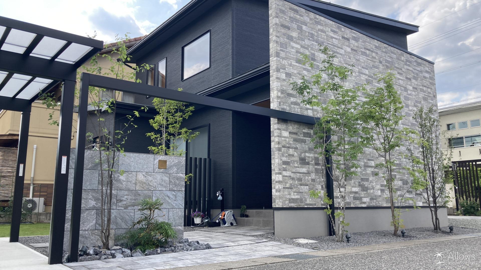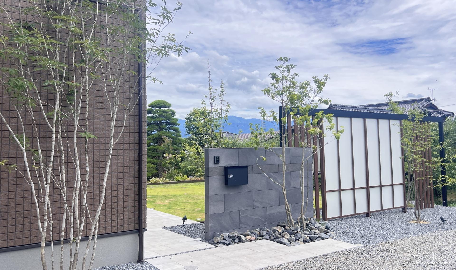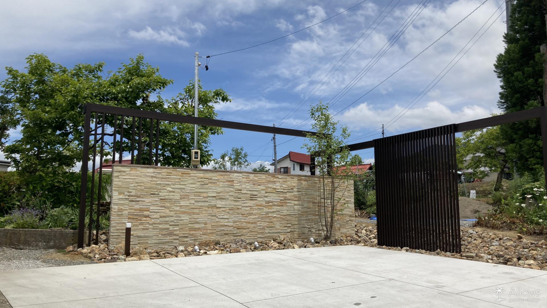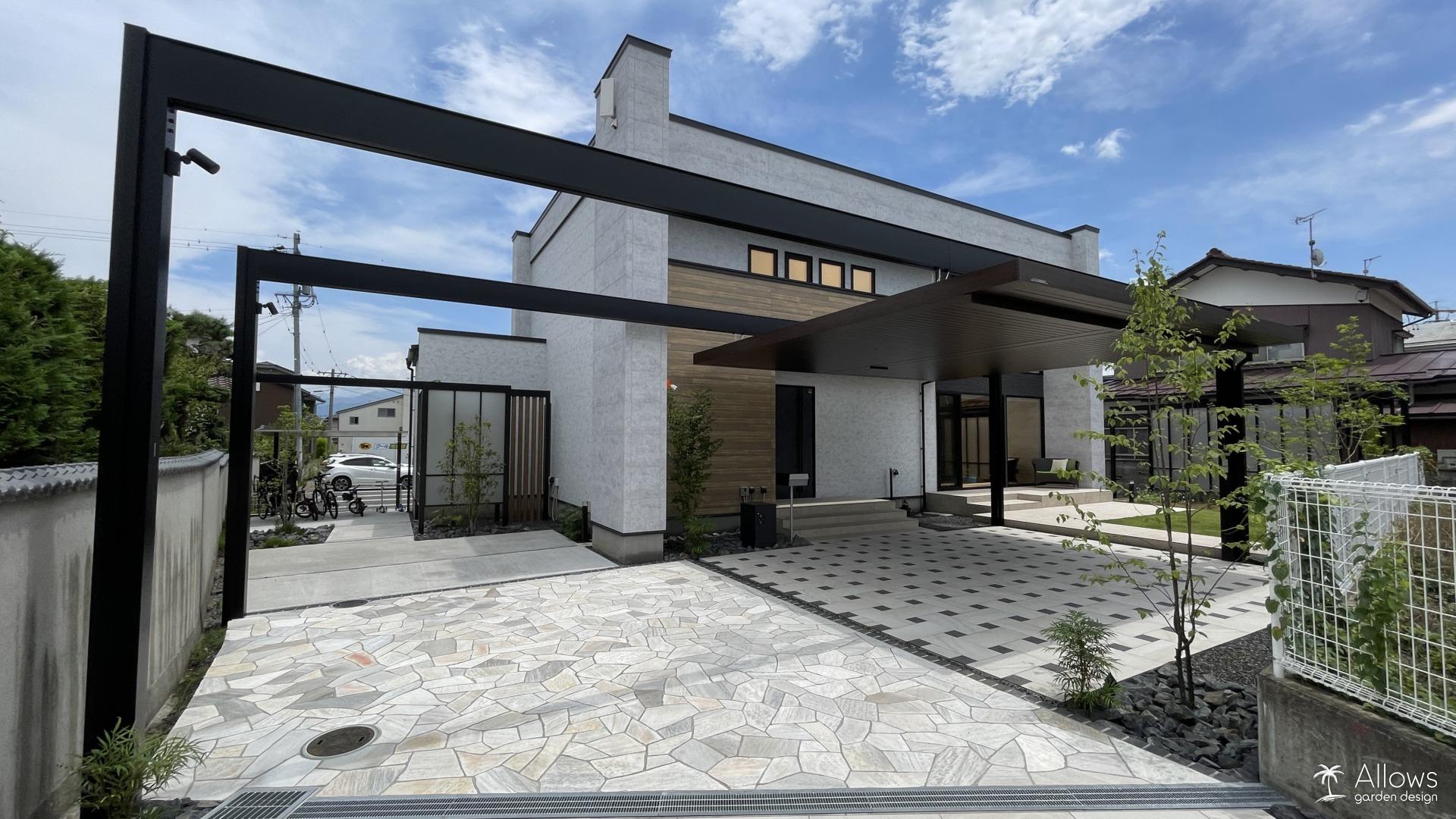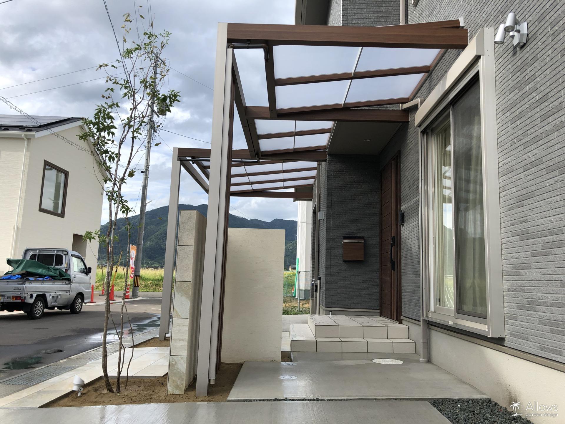 Gルーフ アプローチ屋根×タイル門袖(ジョイアストーン)