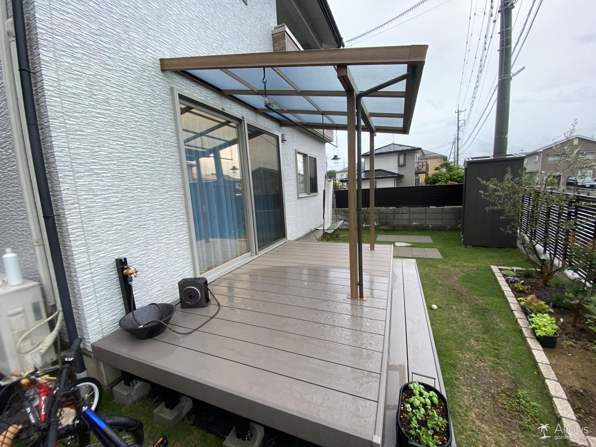 ウッドデッキ(ヴィラウッド)×木調テラス屋根シュエット