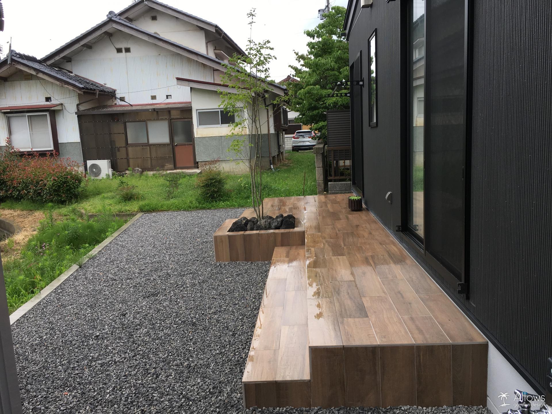 実例を見る木彫のタイルテラス