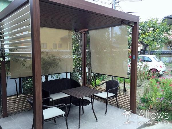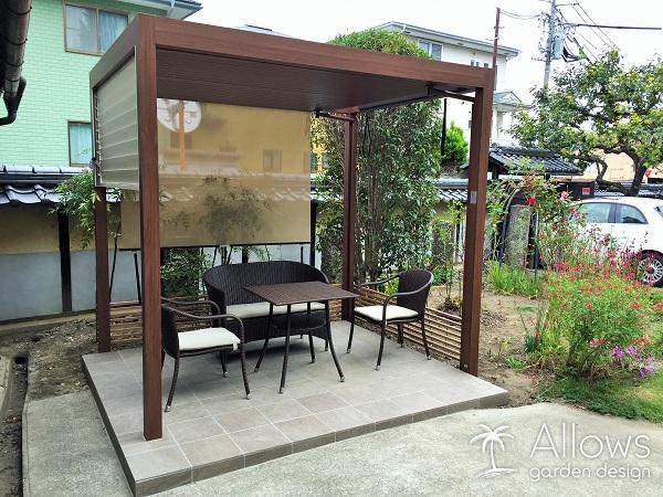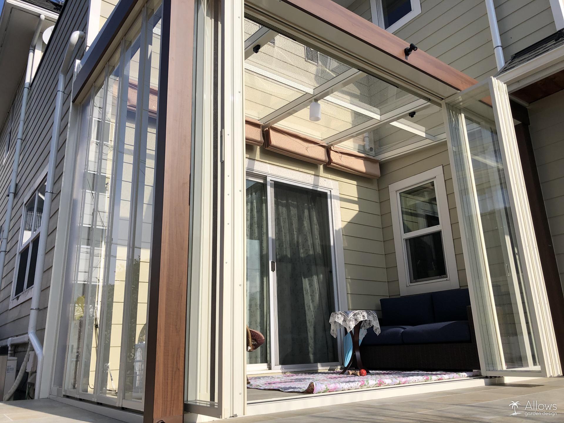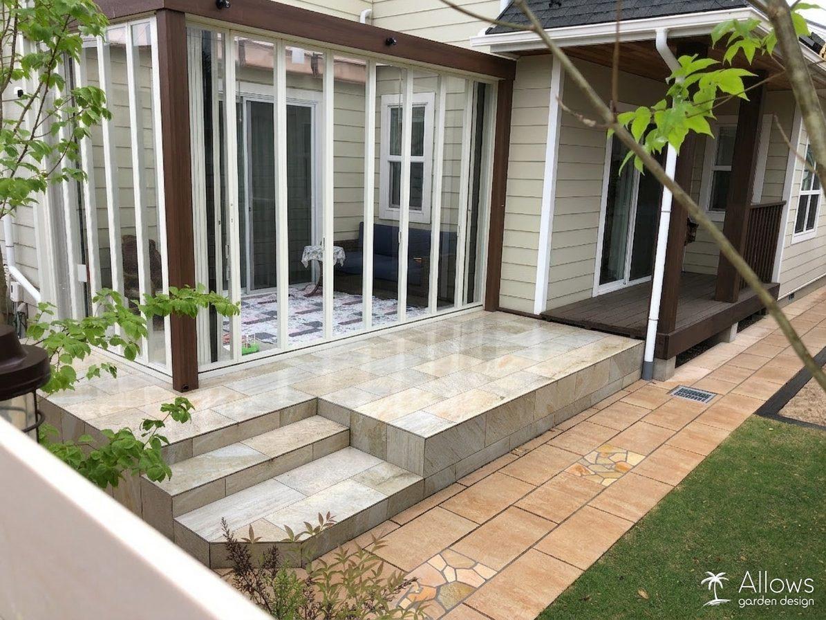 ガーデンルームとタイルテラス
