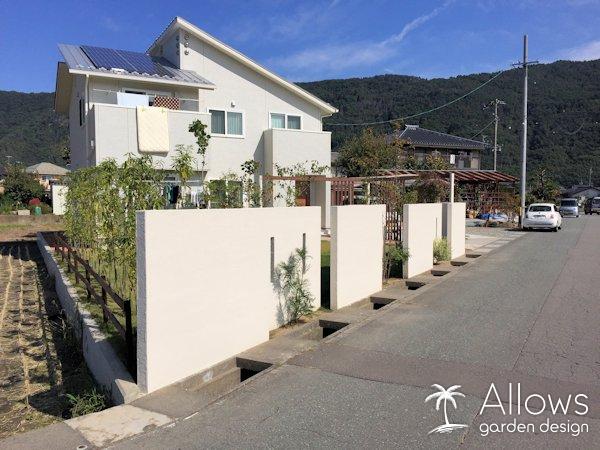 実例を見る変化を付けた塗り壁で仕切るプライベートガーデン