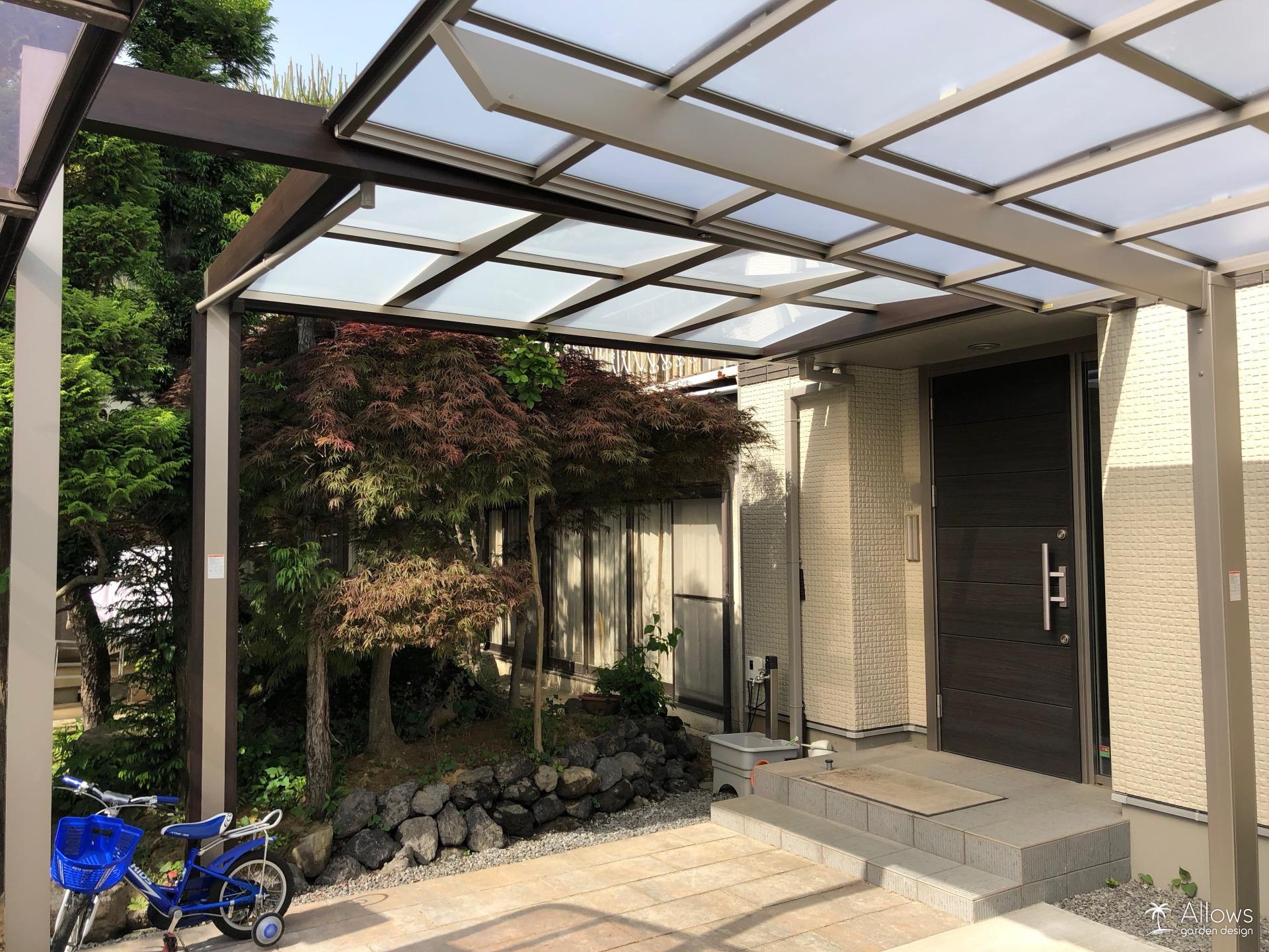 実例を見るプラスGで作る玄関屋根とサイクルポート