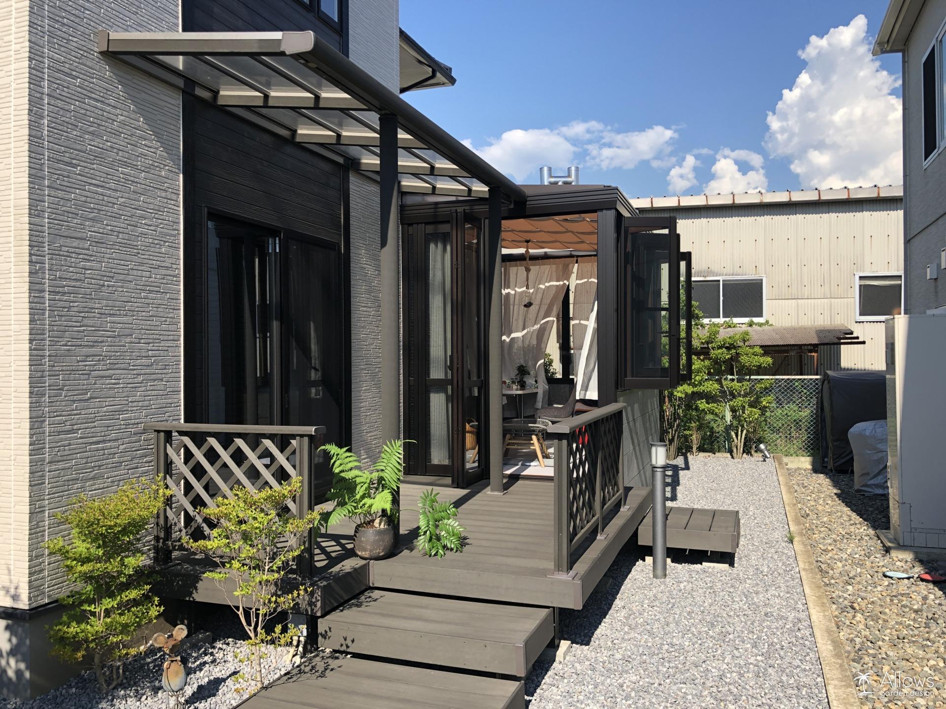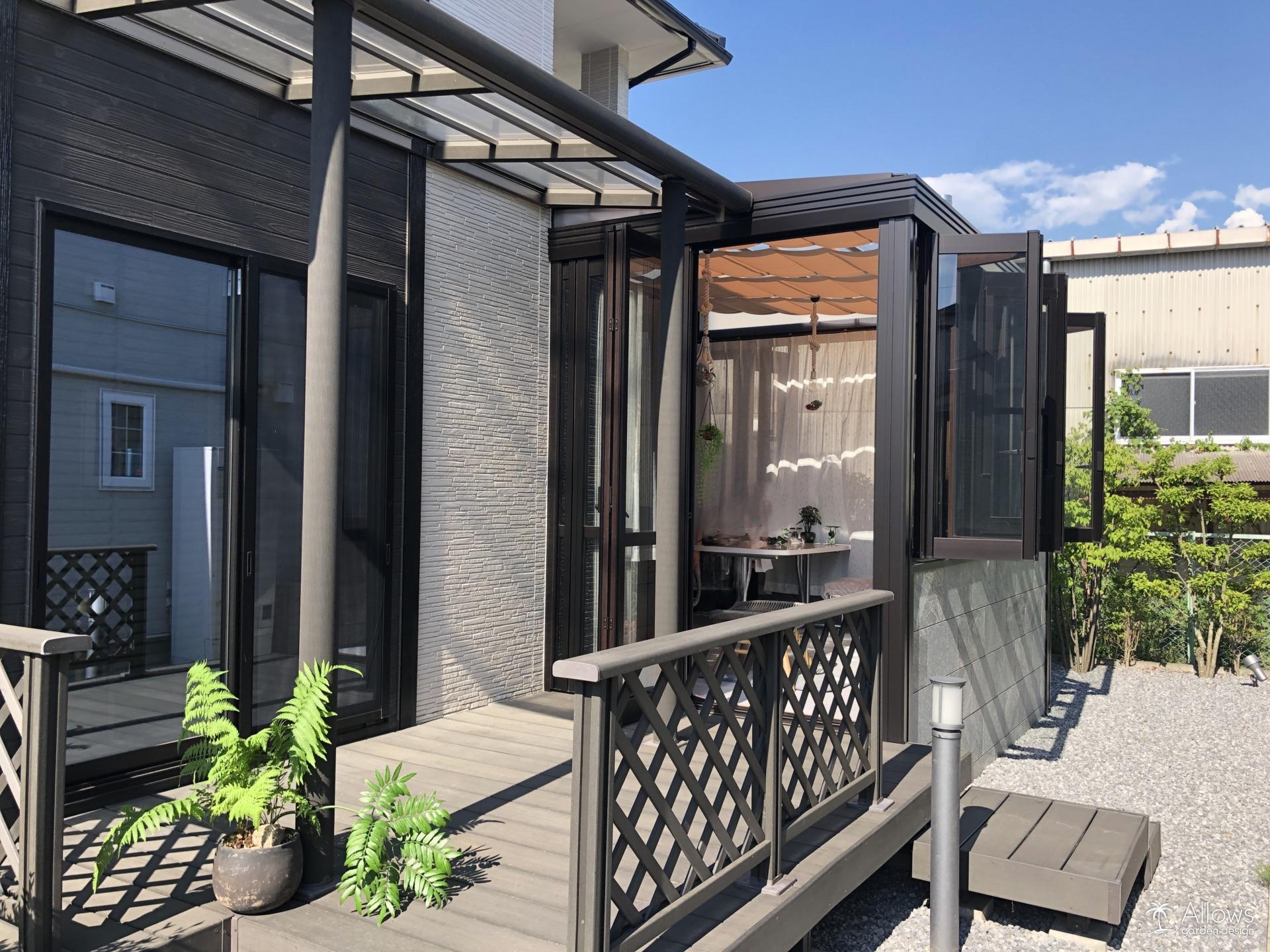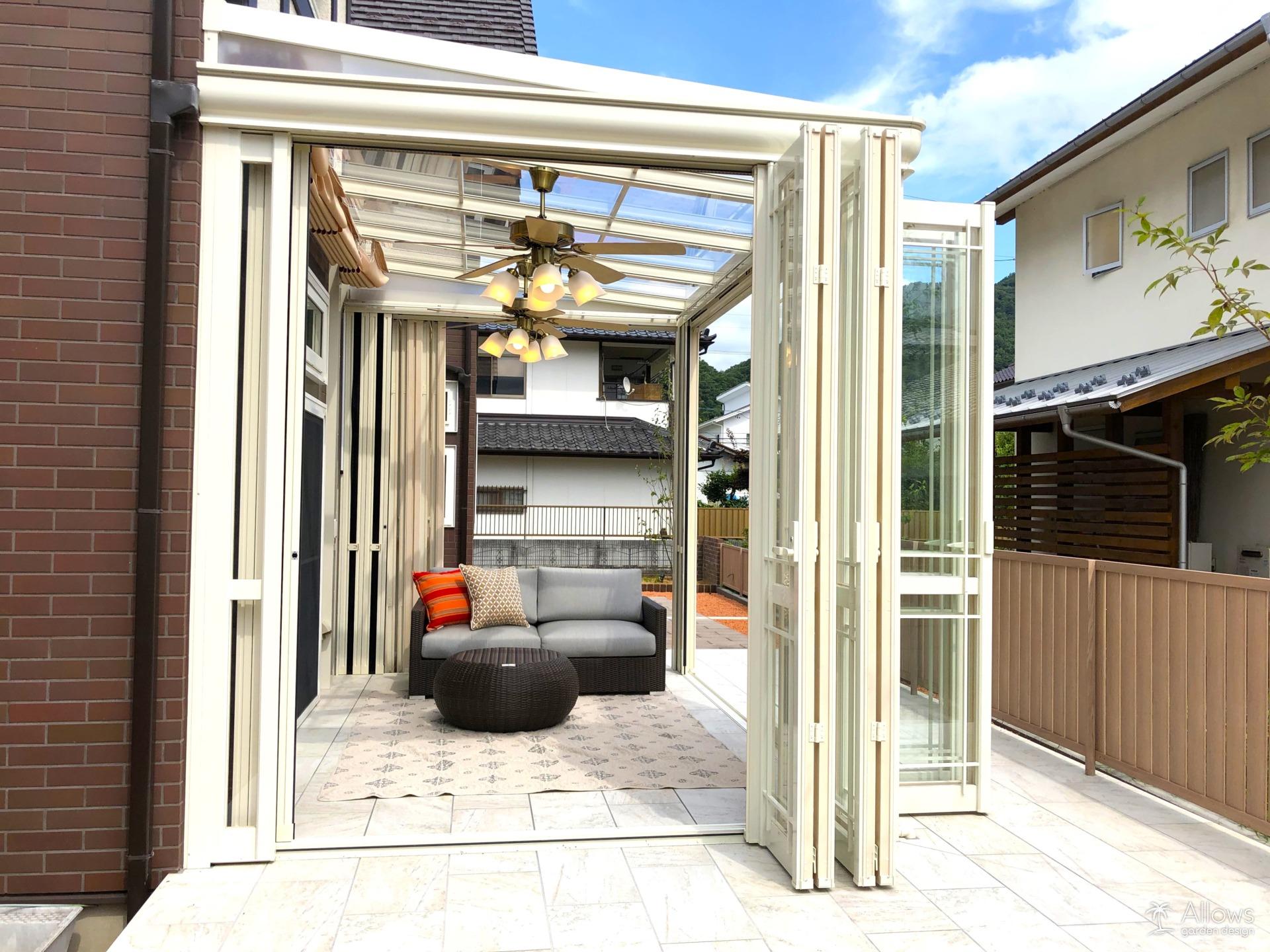 オールグラスポーチとタイルテラス 和からリゾートスタイルへ