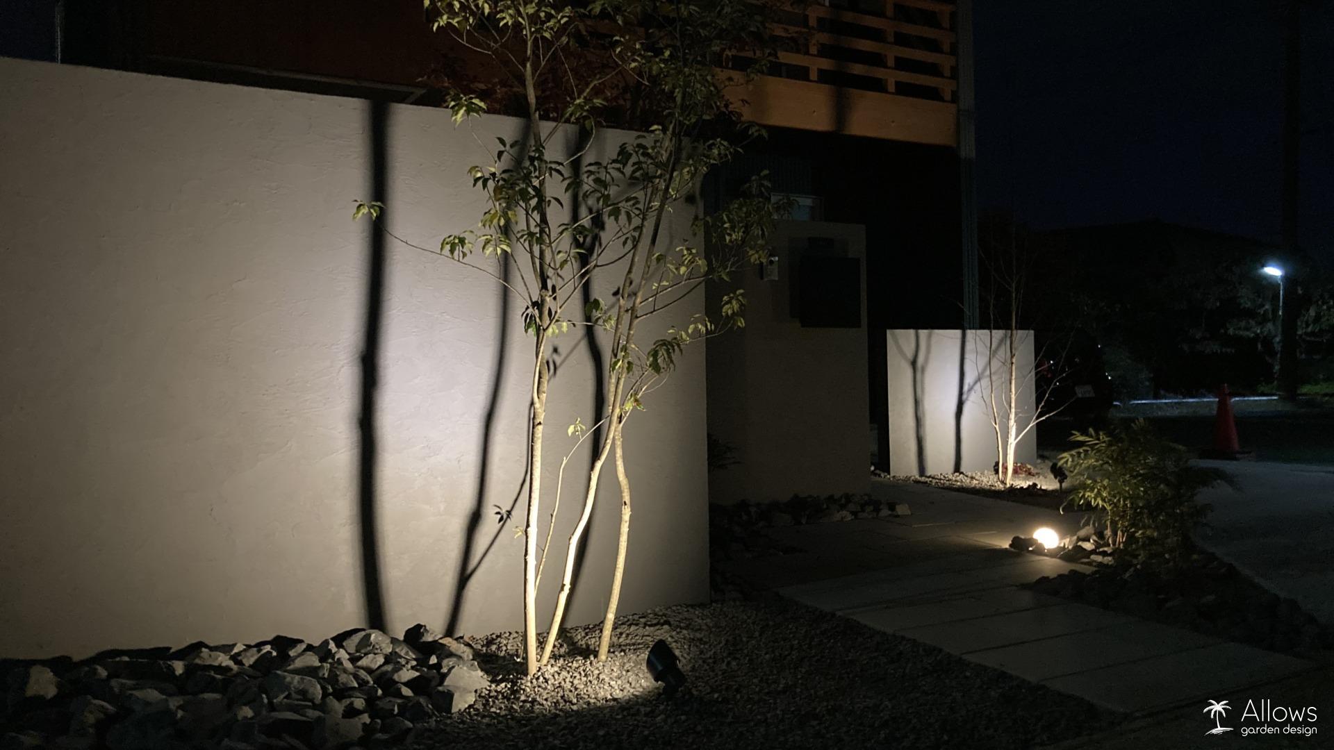 実例を見るモノトーンで高級感のあるファサード ナイトシーン