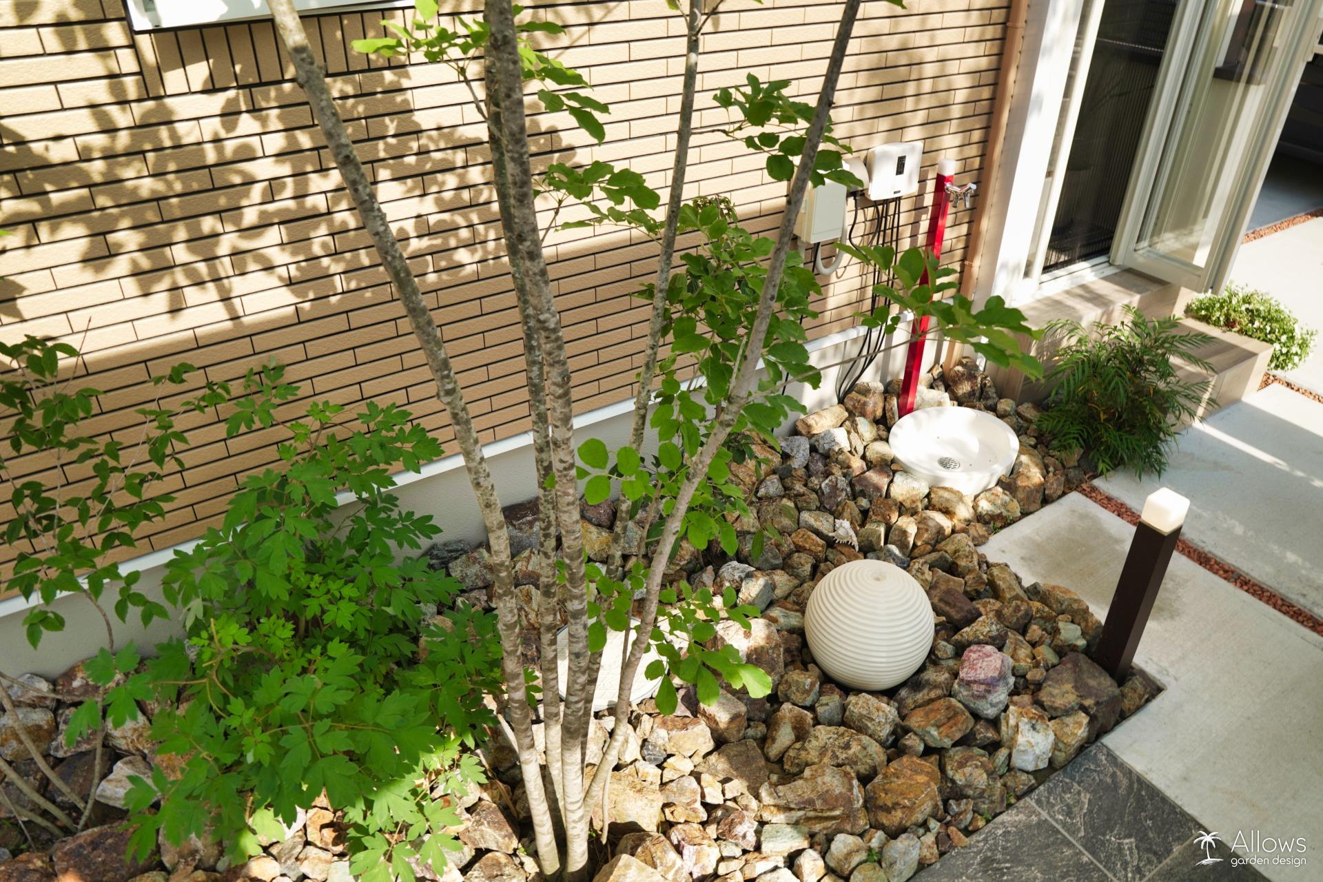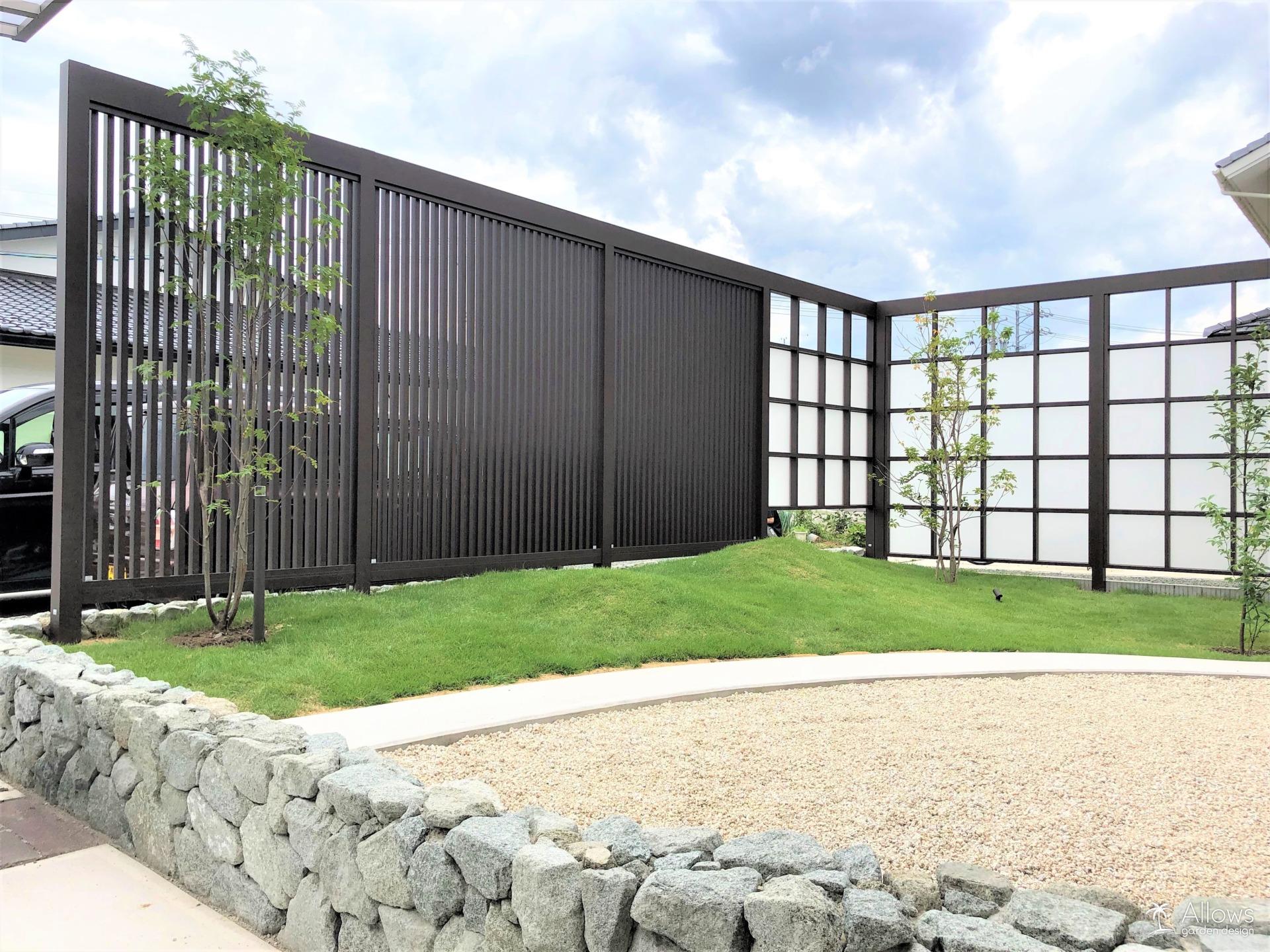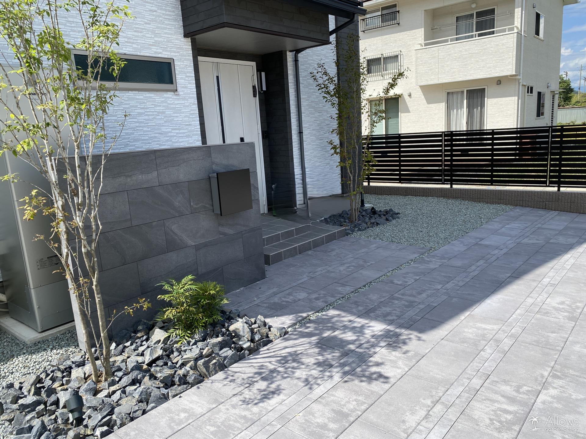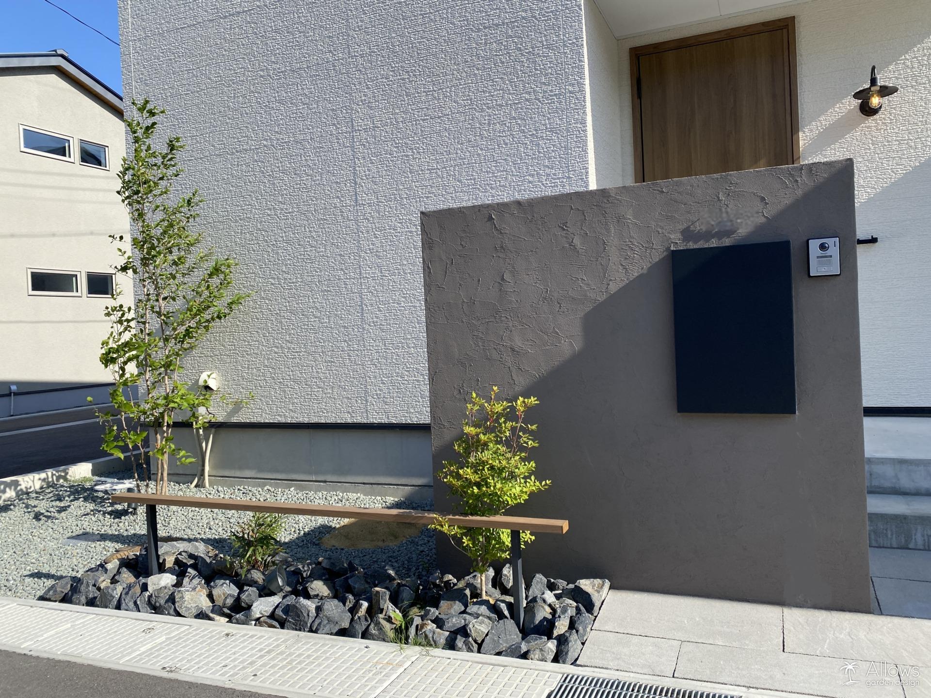 コンクリートブロック門袖×植栽×揖斐黒石×ライト
