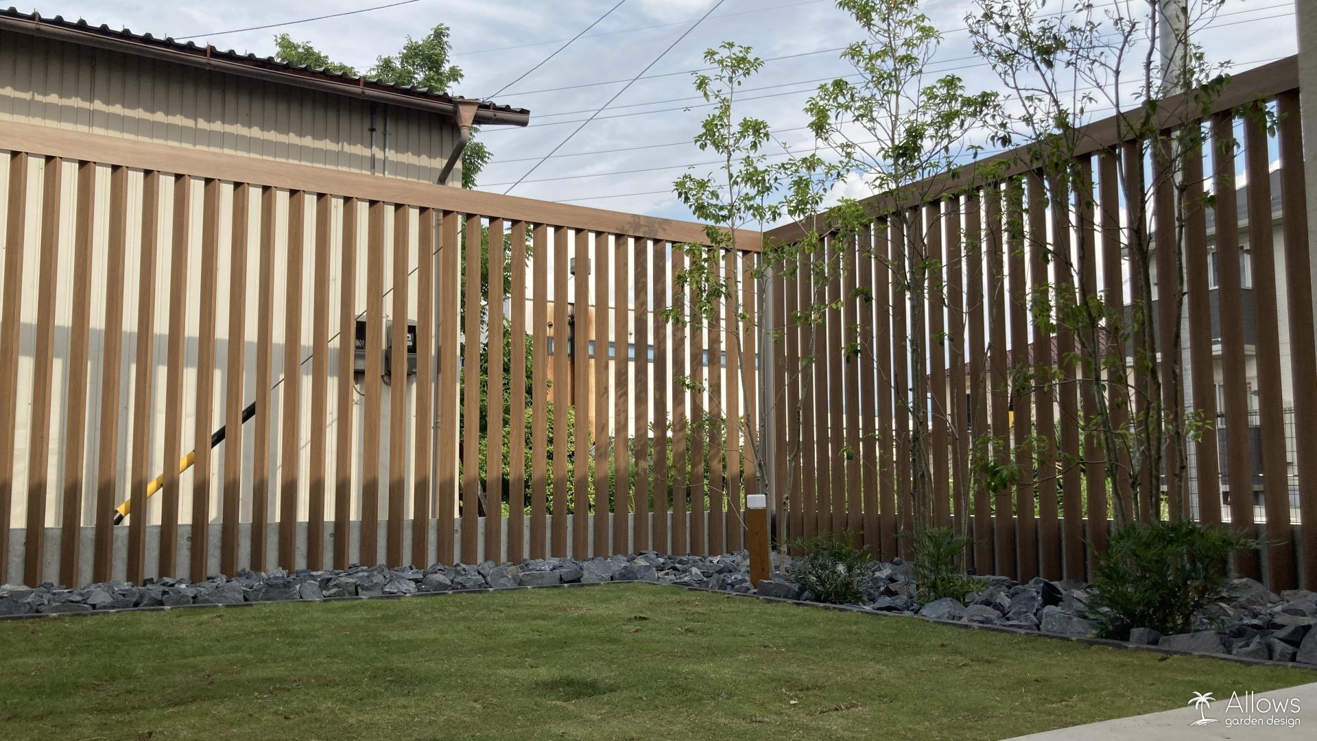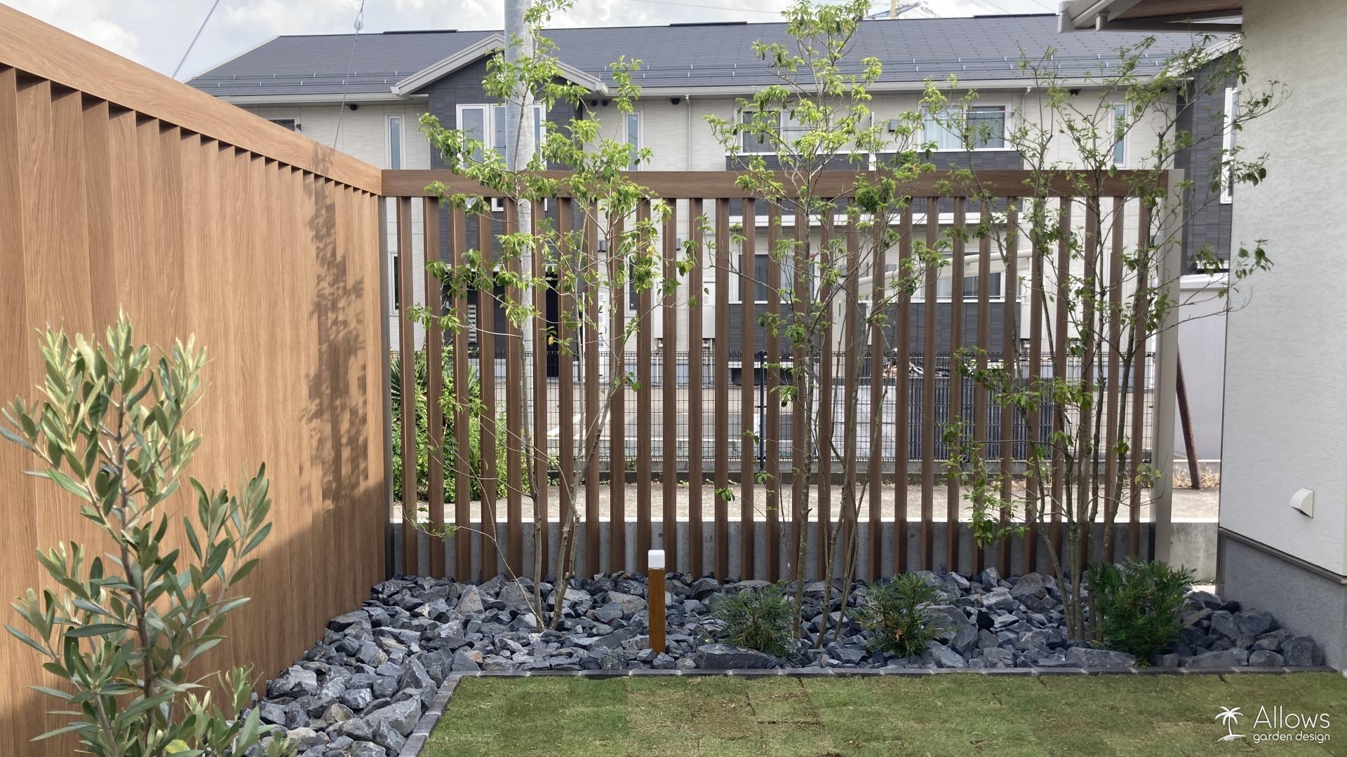 実例を見るプラスG目隠し格子×揖斐黒石×天然芝