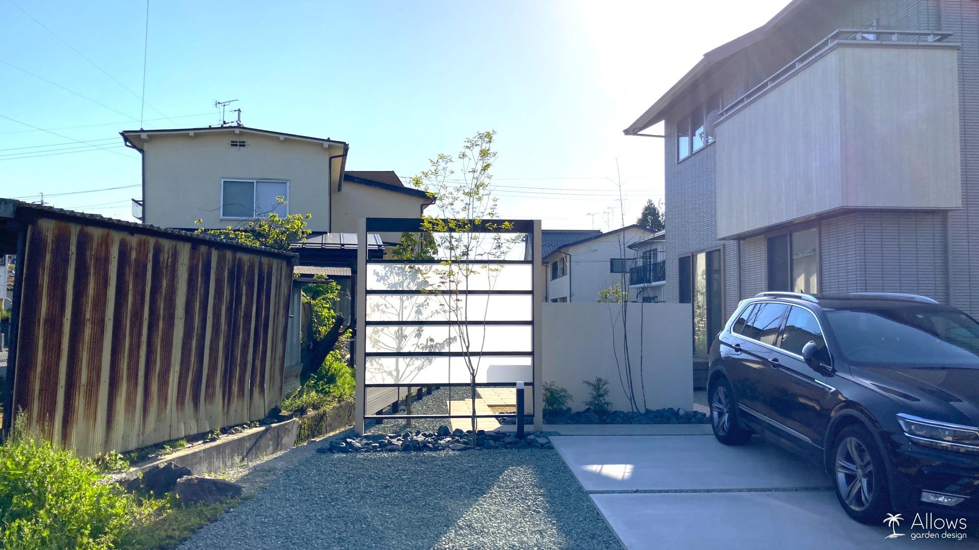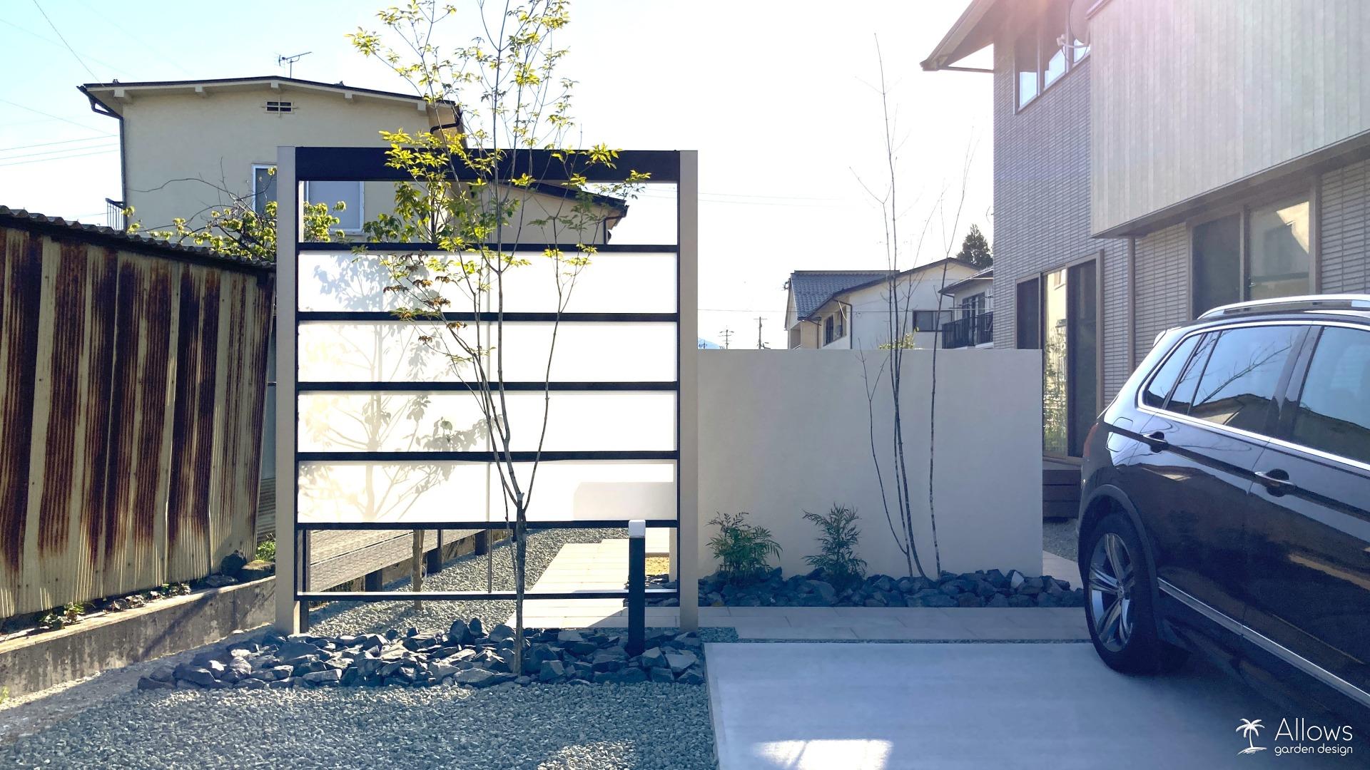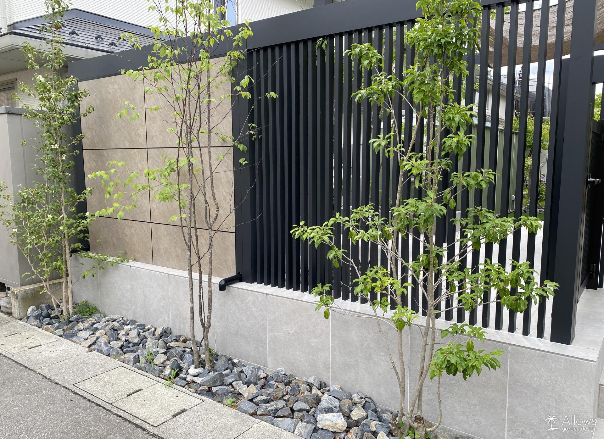 実例を見るプラスG目隠し格子×揖斐黒石×天然芝