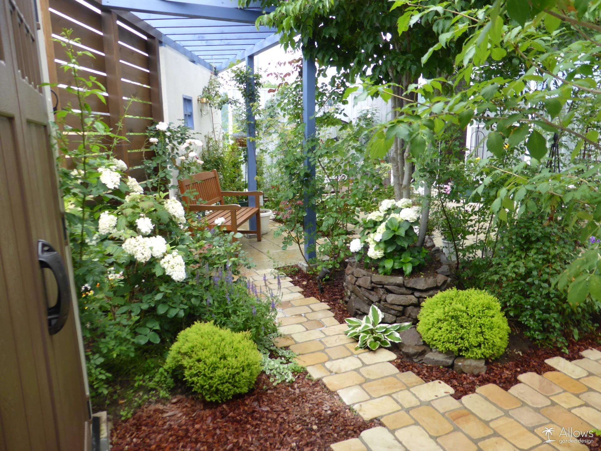 実例を見るホワイトの石張り×ブラックレンガ ツートンアプローチ