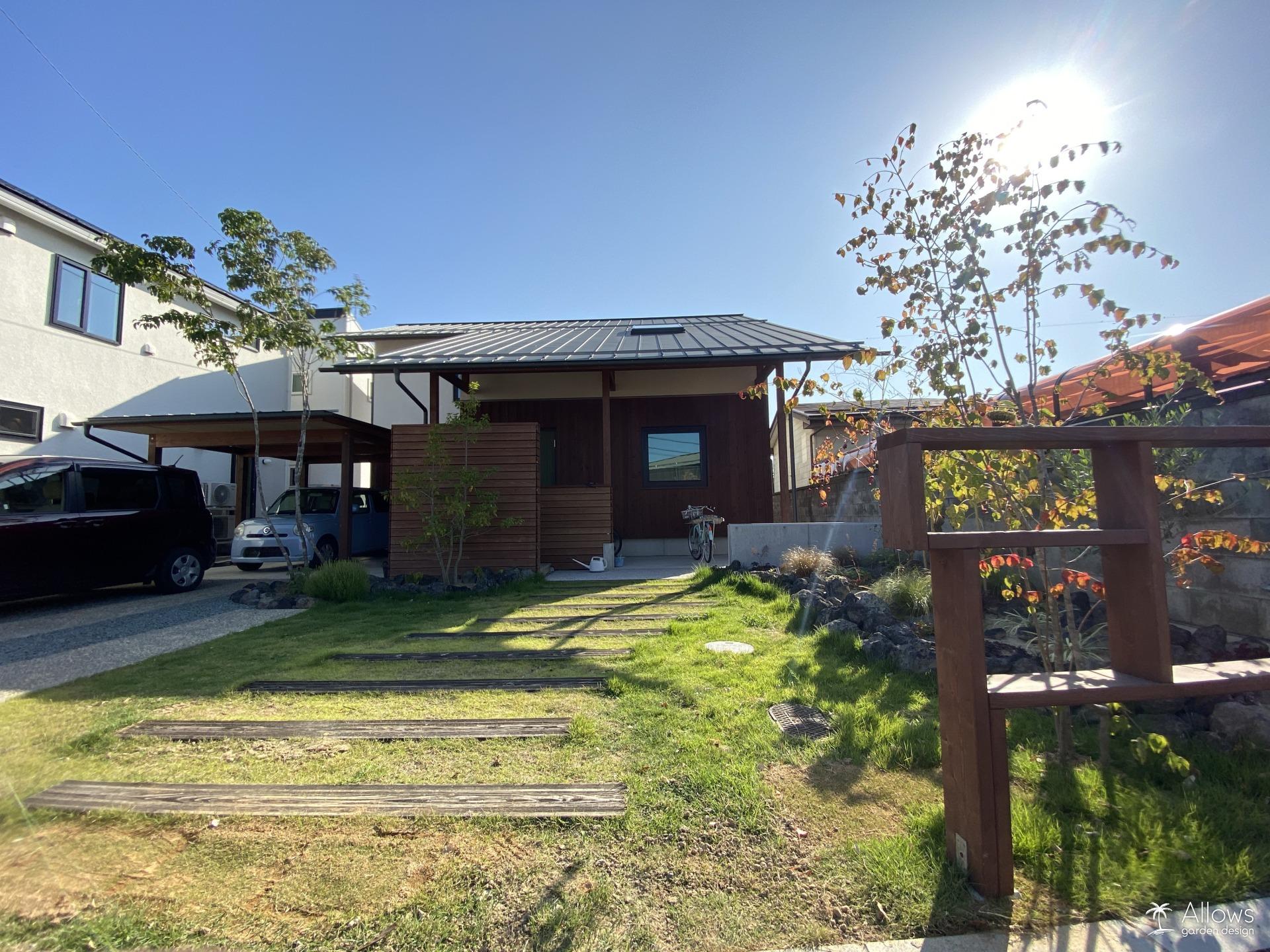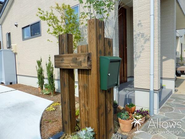 枕木×天然芝×洗い出しのナチュラルアプローチ