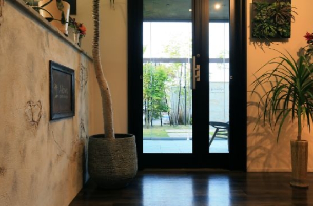 風に揺れる木々の葉の影は、ファサード空間に動きを与えてくれます。