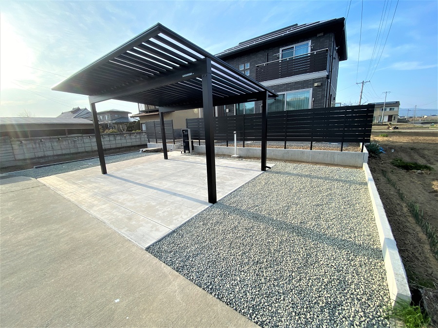道路からの視線を隠すフェンスとカーポートが住宅に合っていてとても素敵になりました。