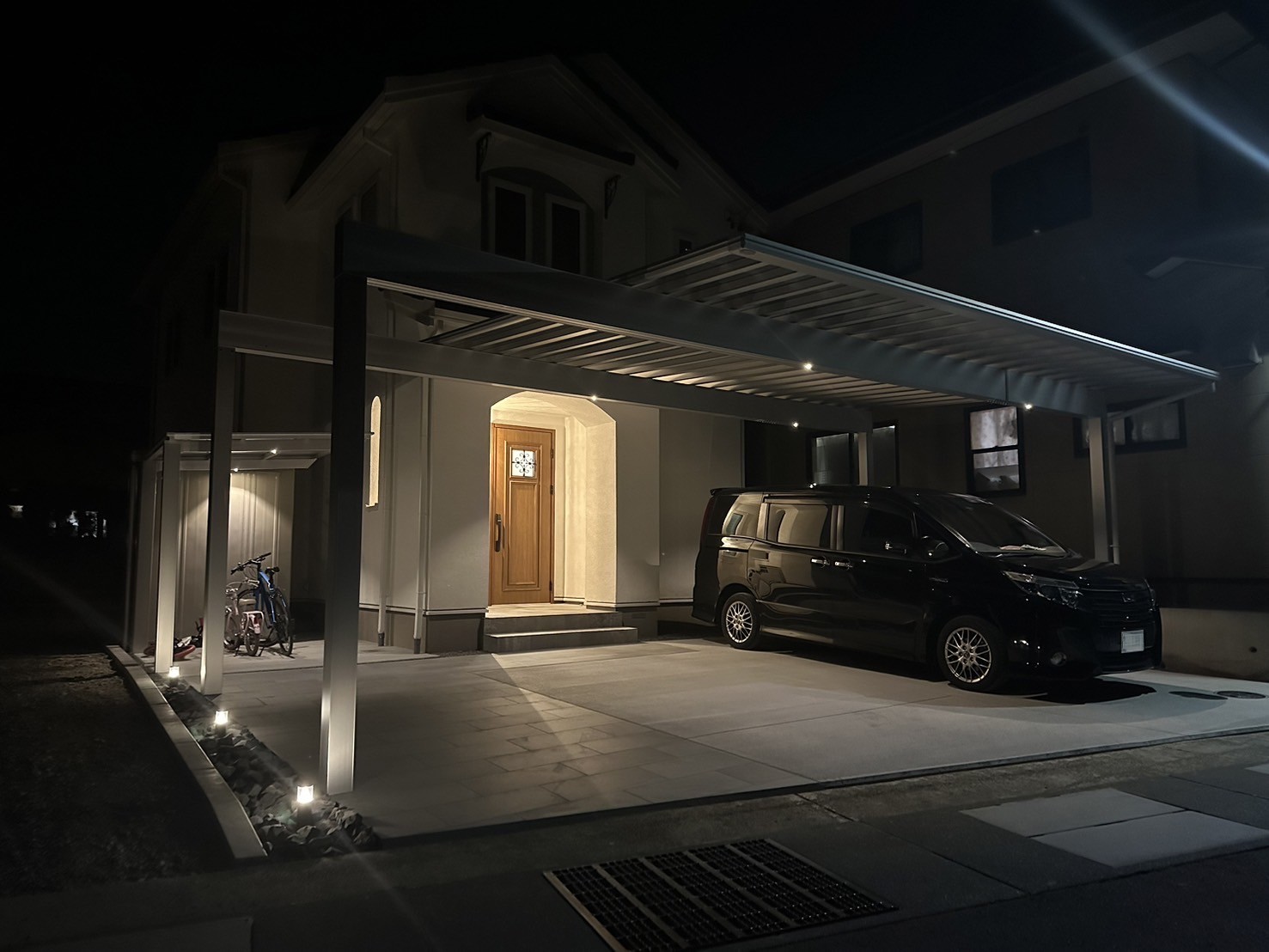 シックな外構にライティングが一段と映えてとても素敵です!