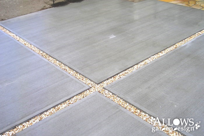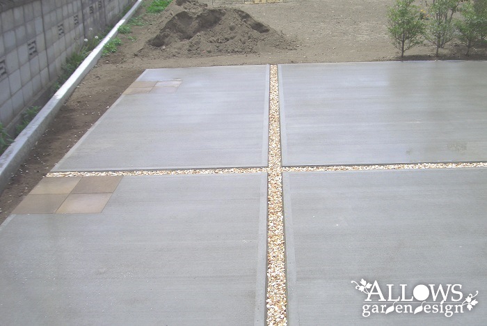 土間コンクリート、刷毛(ハケ)引き仕上げ&目地の化粧砂利。