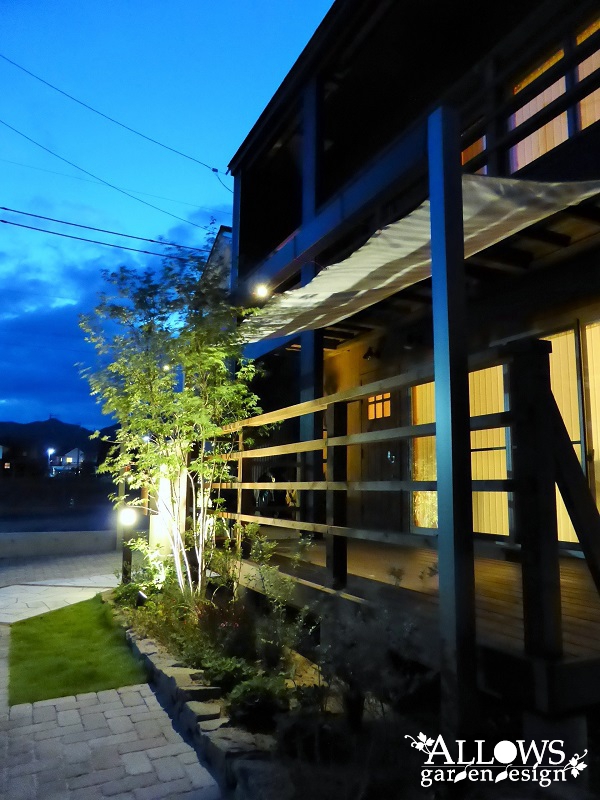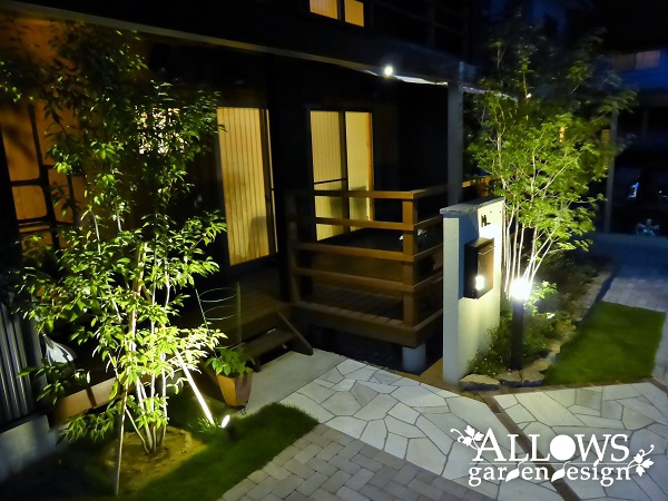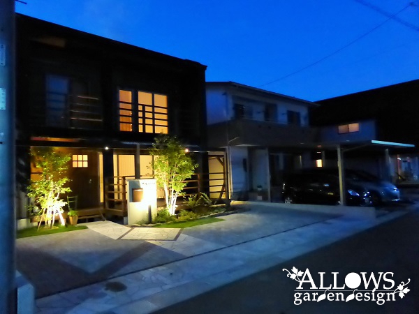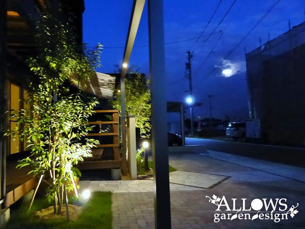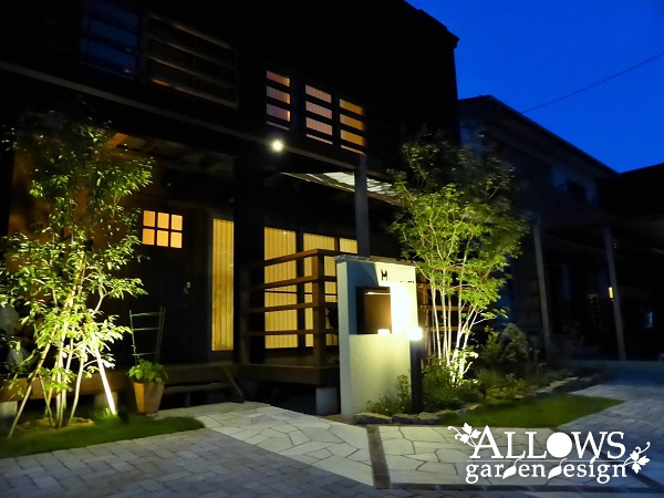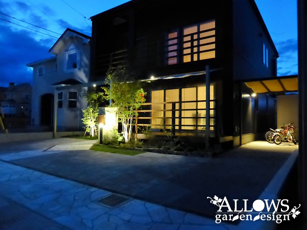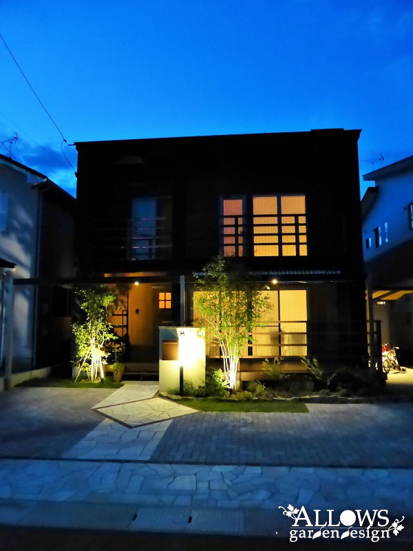 そしてプラスGに取り付けたダウンライトと表札を照らすポールライト。