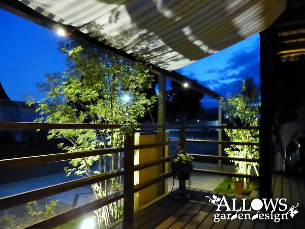 それぞれの高木のライトアップと自転車置場スペースの照明。