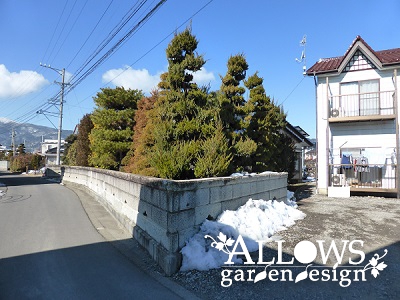 以前は庭石とたくさんの植木で形成されていた和風庭園で、道路沿いは大谷石積みの塀でした。