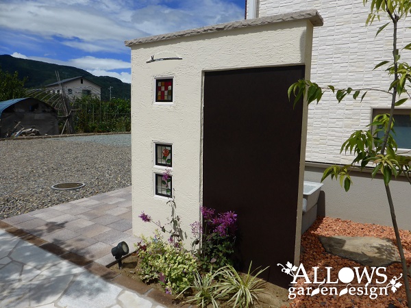 駐車場とアプローチはインターロッキング。