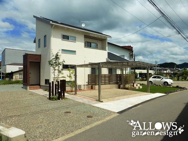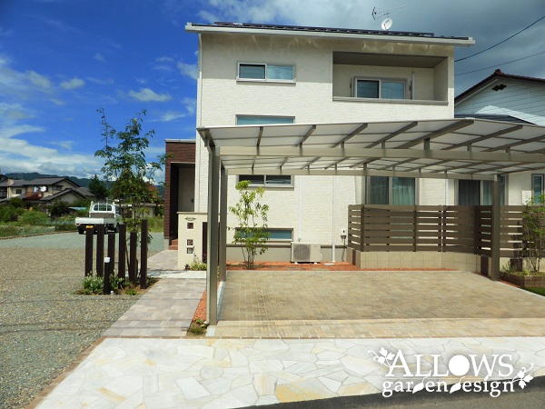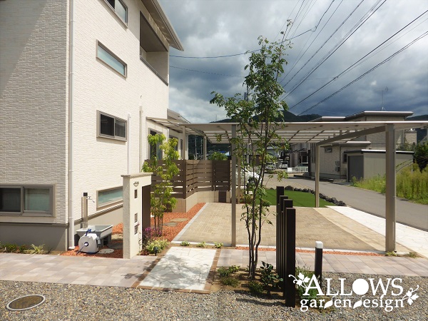 オープン外構・庭・ガーデンの施工例・門・車庫まわりの施工例