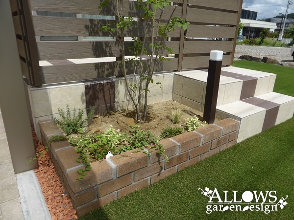 階段脇のちょっとしたスペースにも、植木と花壇を。