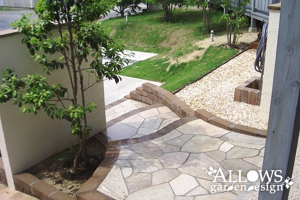 階段の方は天然石の乱張り。