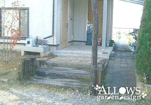古くなった枕木階段を、ナチュラルな雰囲気を壊さないように天然素材で