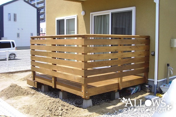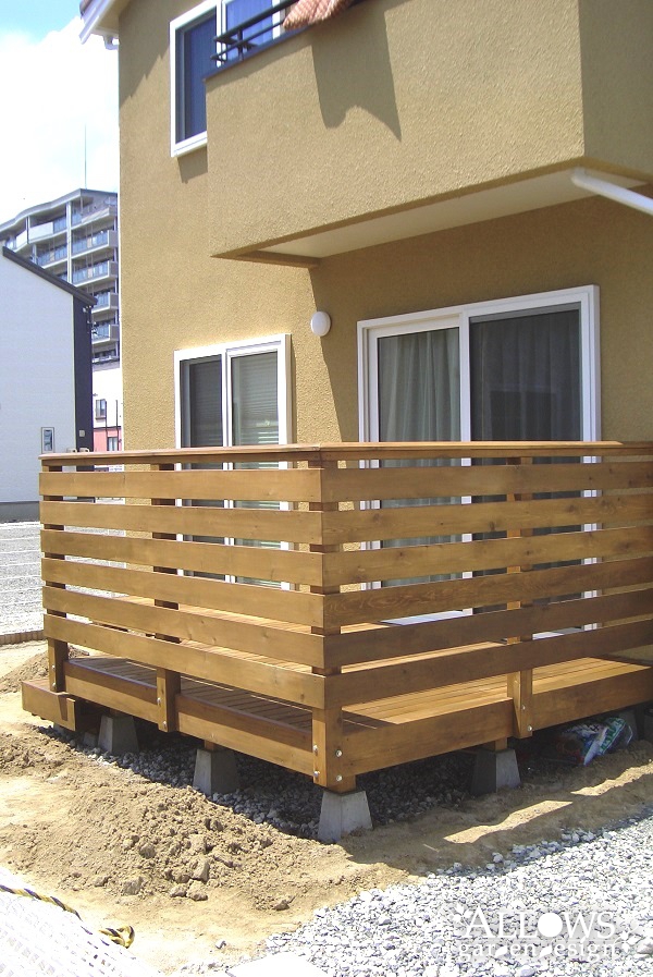 完全に住宅にマッチした、優しい感じのウッドデッキが出来上がりました。