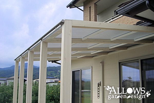 テラス屋根は三協アルミの『スマーレ オープンテラスタイプ』です。