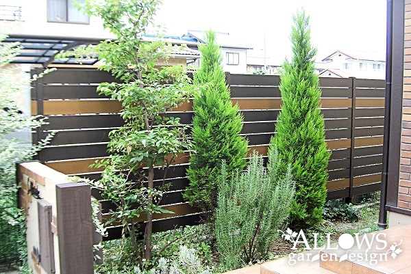 玄関横には目隠しのフェンスを設置。