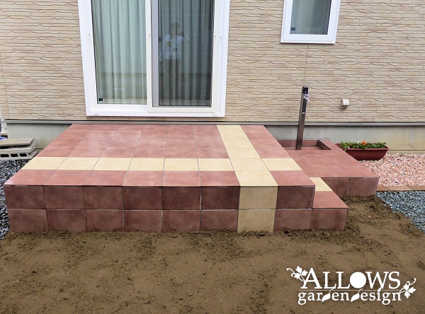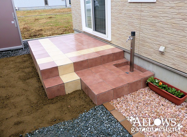 南側のタイルテラス。