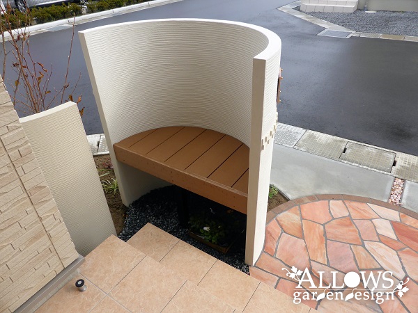 半円形の門柱裏にはなんとベンチを作成!