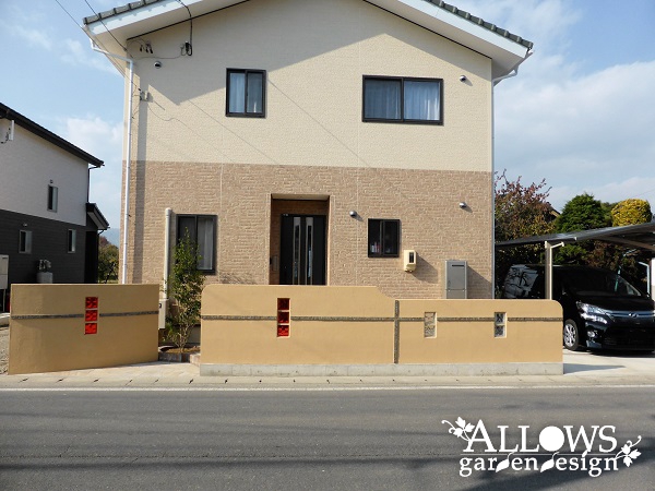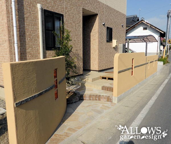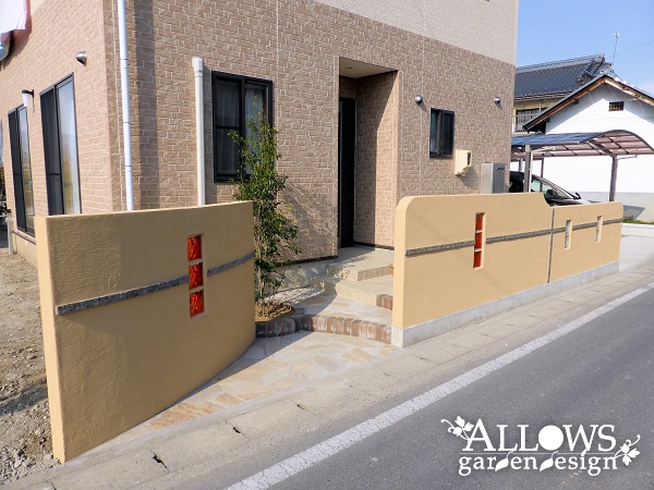ように玄関ポーチの正面をすっぽりとウォールでふさぎました。