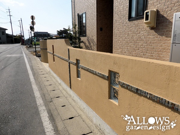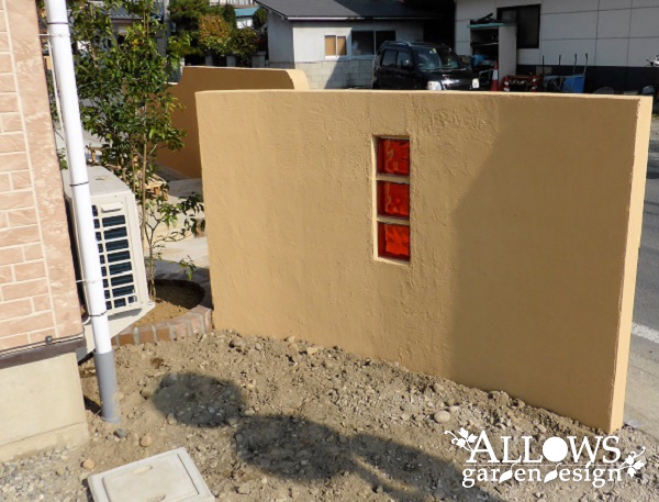塗り壁は単調になりがちなので、高さを変えて形状にも一工夫を加えて、アクセントに