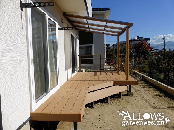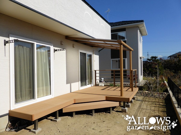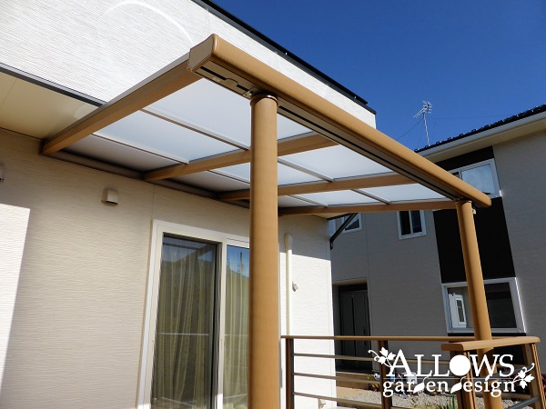 デッキと同じ、木粉入り樹脂製のテラス屋根です。