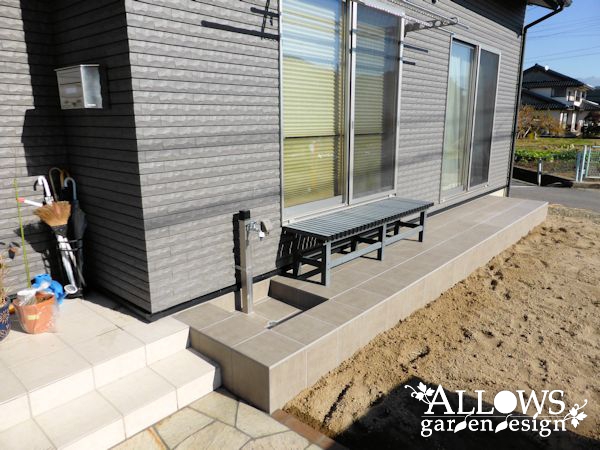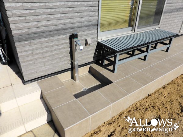タイルは住宅の外壁との相性を考えて、こんな色にしました。