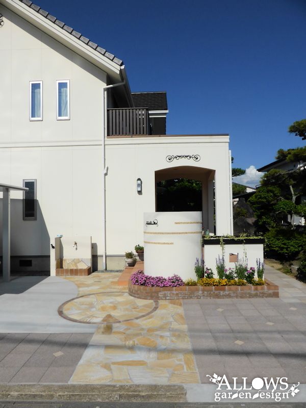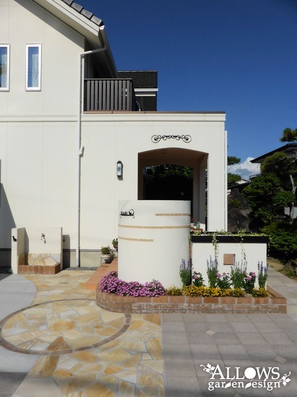 綺麗な円形のデザインが印象的なエクステリアが出来上がりました。