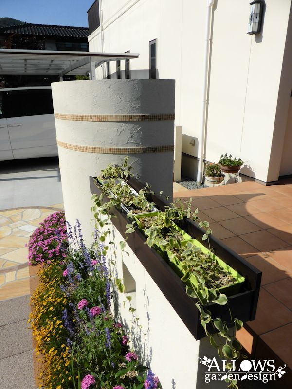 サブウォールには、プランターとしても兼用できる笠木を採用。