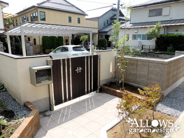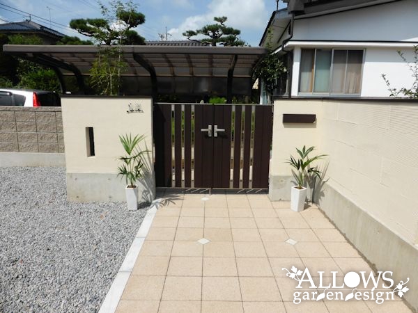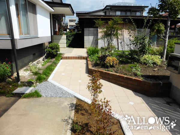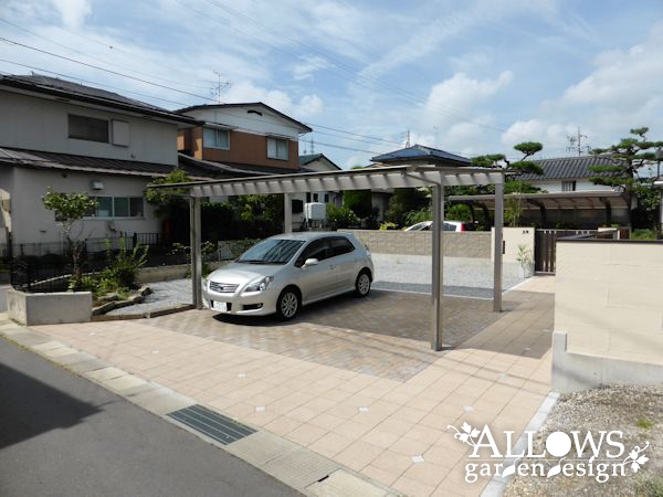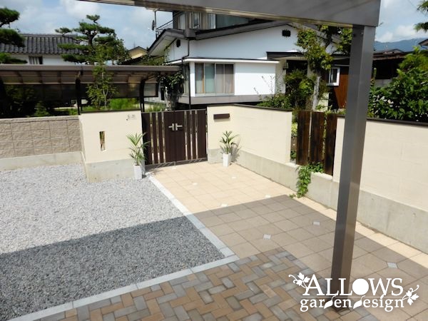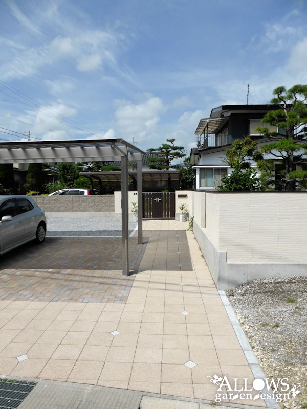 駐車スペースは普及タイプのインターロッキングで、アプローチは同じ